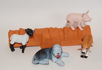 111. Bafta - vasikka, lammas ja possu olkipaalilla